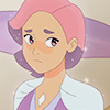 Someone with hair like this. [ He reaches, and pinches a little of her pink hair between his fingers. ] She was trying to warn us.